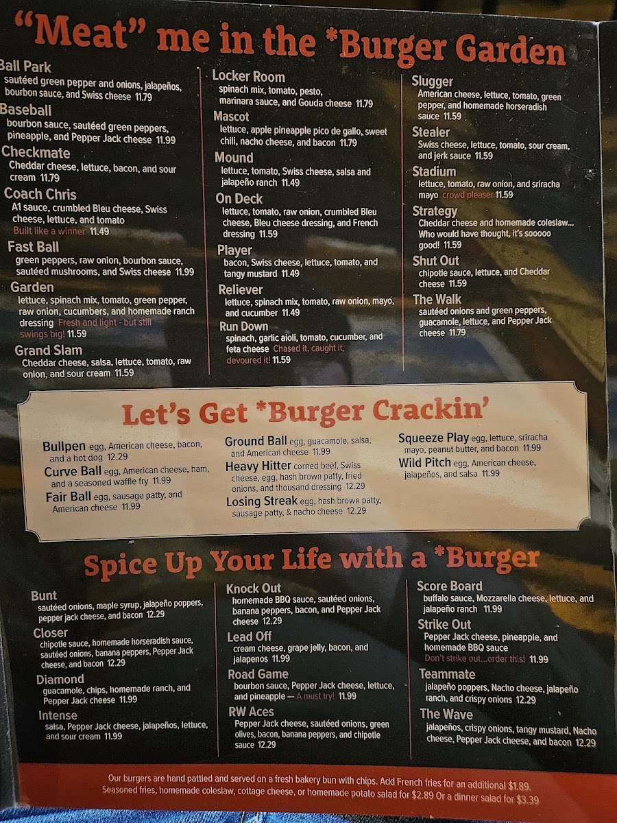 You can expect a variety of thoughtfully prepared burgers like the California Burger or the Minnesota-inspired MN Burger, alongside satisfying sides such as cheese curds, tater tots, and seasoned waffle fries. The menu also features approachable starters like fried pickles and smoked gouda macaroni poppers, perfect for sharing or enjoying alongside a cold drink.